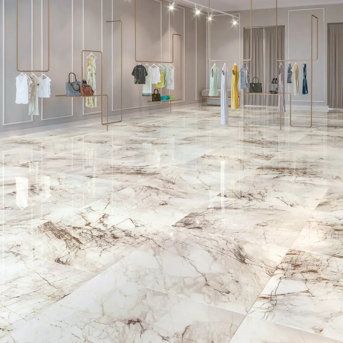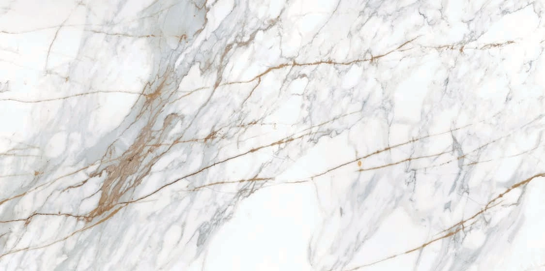 Calacatta Goldie is inspired by one of the most prestigious marbles in architecture — the classic Calacatta Gold. This glazed porcelain collection captures the stone’s spectacular elegance with graceful grey veining interwoven with striking golden tones that radiate warmth and luxury. The balanced contrast between the soft white background and the vivid gold veins makes each piece a statement of sophistication. Perfect for floors and walls alike, Calacatta Goldie brings timeless grandeur and architectural beauty to any space, from modern interiors to classic designs.